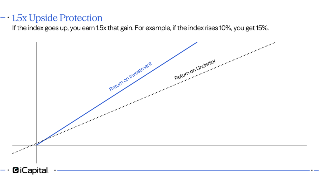 • If the market goes up, the investor earns 1.5 times the market’s gain (up to a cap).